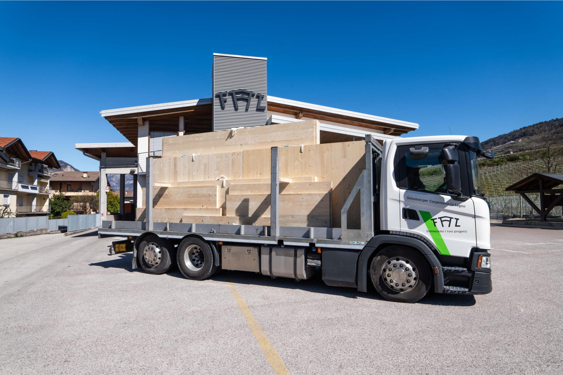 La nostra consolidata conoscenza del legno ci permette di consigliare la materia prima più adatta alle vostre esigenze. Lavoriamo più di 7.000 metri cubi di travi lamellari all’anno. Grazie ad un parco mezzi dotato di autocarri per trasporti eccezionali siamo in grado di fornire il materiale direttamente sul cantiere.