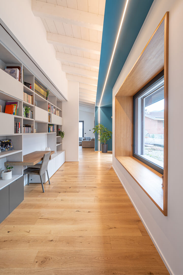 L’edificio interamente realizzato in legno, ha visto impiegati ben 600 mq di X-lam e 32 mc di lamellare, per un edificio che è un perfetto connubio di prestazioni ed estetica.